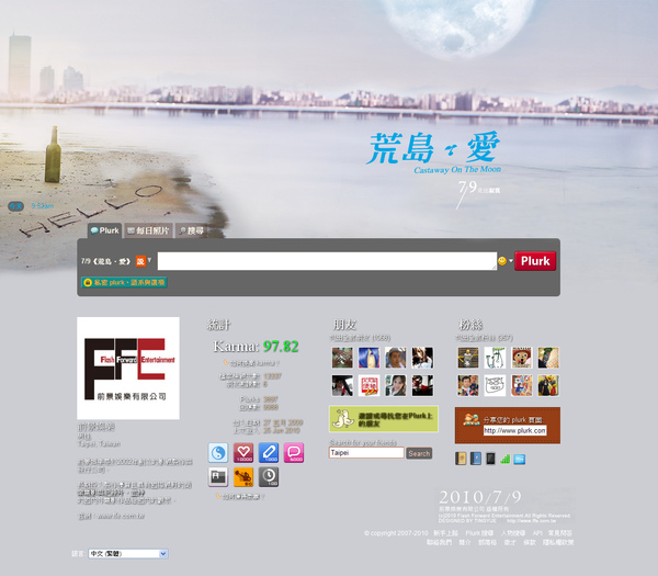 6/30(三)21:00~22:00台灣首度舉辦的電影噗浪聚上與大家見面,影迷們務必把握這機會,在浪上與導演零距離的互動,盡情發問,讓導演感受到台灣噗友們的熱情。在這夜深人靜時,來聊一聊電影、韓國美食、愛情、足球、整形、甚至wonder girls!保證讓你度過一個不寂寞的夜晚…